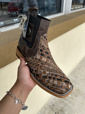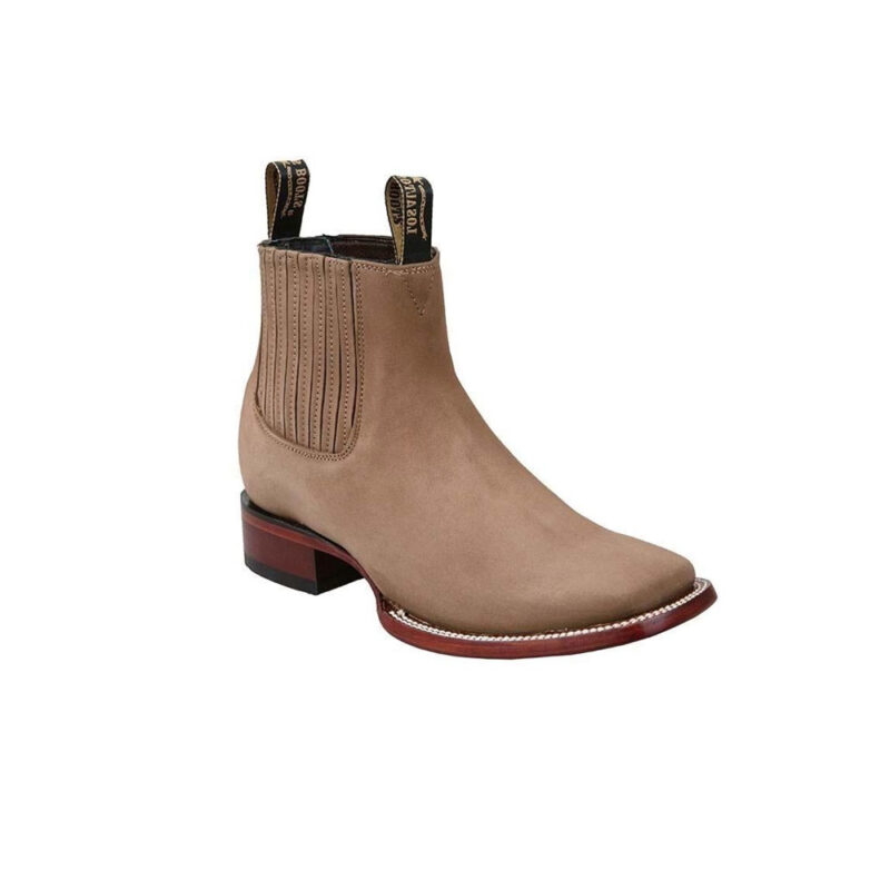 Nobuck Wide Square Toe Ankle Boot in Taupe